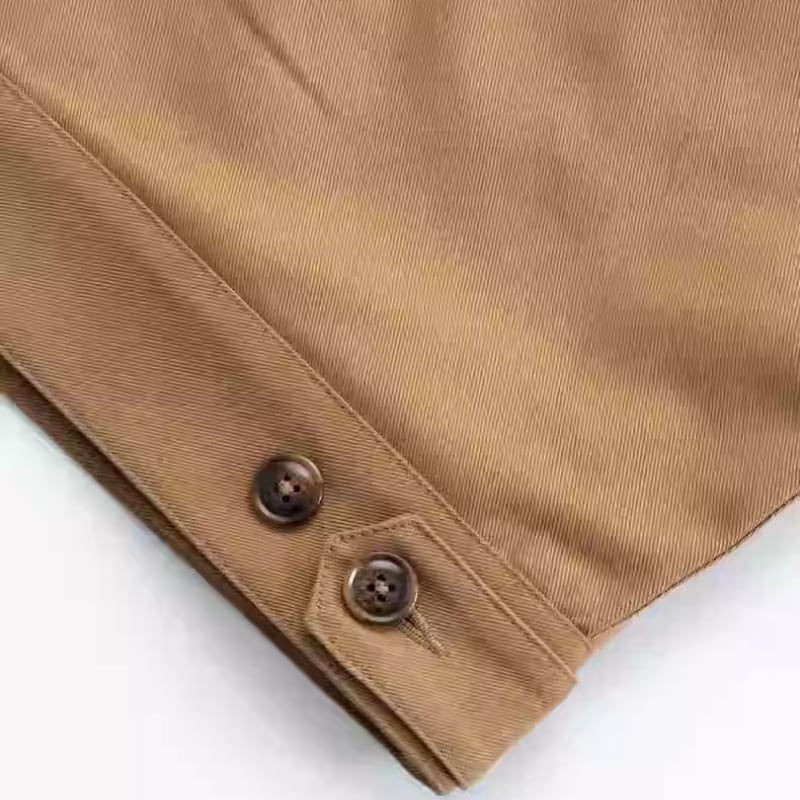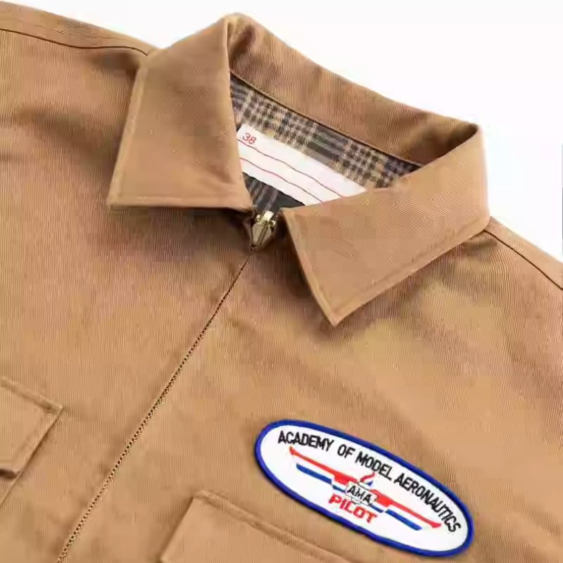 胸元のワッペンがアクセントになったヴィンテージ感が漂うショート丈でクラシカルなデザインが魅力のメカニックジャケットです。