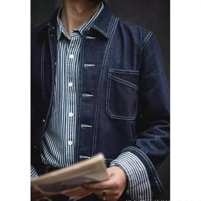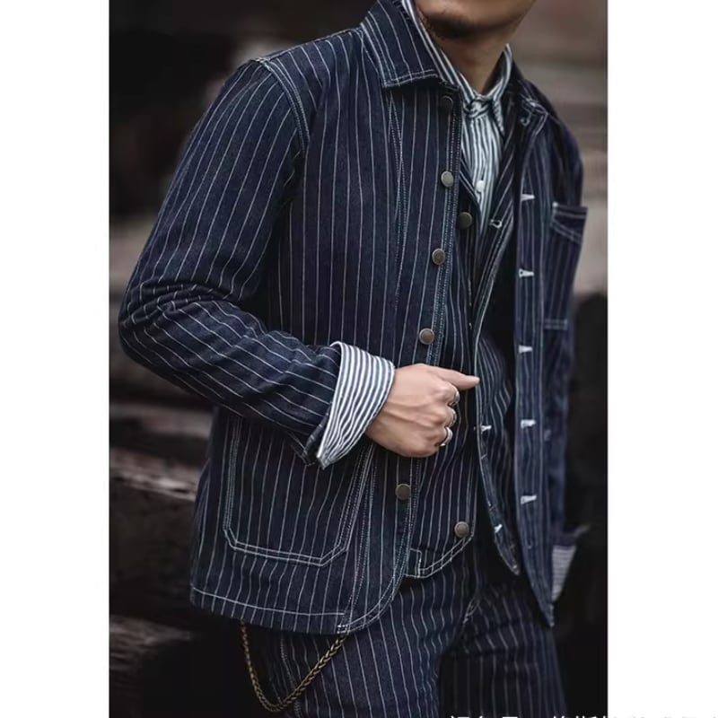 ストライプ柄デニムワークジャケット ストライプor無地2タイプ L0095