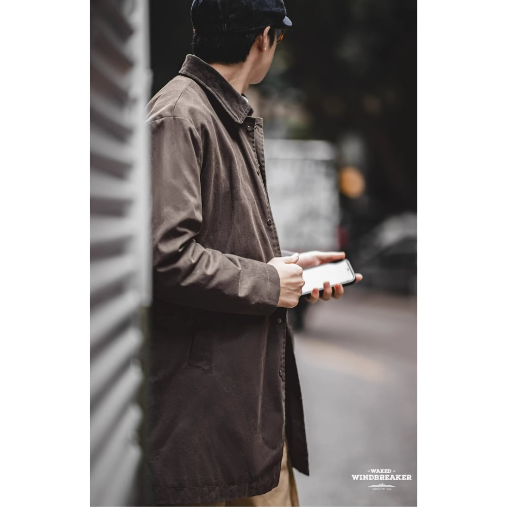 当店オイルワックス生地シリーズの防風、防水コートです。